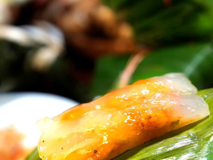 Bánh Nậm là một món bánh truyền thống nổi bật trong kho tàng ẩm thực cung đình và dân gian của xứ Huế. Với hình dáng dẹt, mỏng, mềm mịn, bánh nậm được gói trong lá chuối, mang đậm hương vị quê hương và sự tinh tế trong cách chế biến. Nguyên liệu chính đươch làm từ bột gạo, đôi khi pha chút bột năng để tạo độ dẻo và mềm mượt. Bột được nấu chín một phần trước khi trét vào lá.